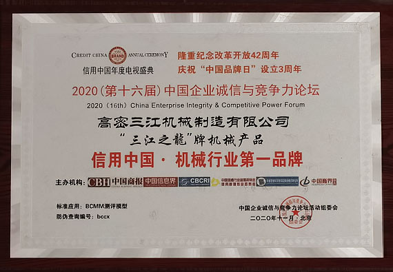 “三江之龍®”是高密三江2005年就起頭注冊利用的品牌牌號,已成為鍛壓行業著名品牌,屢次榮獲商務部、信譽中國、中國企業品牌評估中間等當局、行業協會的懲處,遭到各行業客戶的充實必定和普遍贊美。